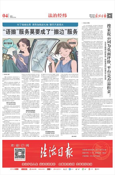 中国传媒大学文化产业管理学院法律系主任郑宁认为,相关业态在监管层面尚不完善,再加上这些聊天互动隐蔽性较强,滋生出一些乱象。加强监管可以尝试将“语擦”服务尽量框定在正规的第三方平台上,平台对“语擦师”设定必要的准入门槛,对用户是否成年展开身份认证,避免未成年人接触到不符合其年龄段的内容。当双方涉及经济往来时,平台还需做好风险提示工作,对涉嫌诈骗的账号进行及时处理。