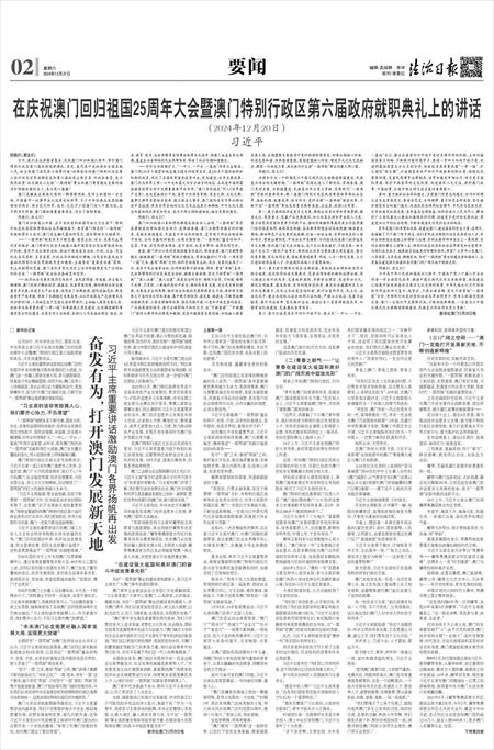 在庆祝澳门回归祖国25周年大会暨澳门特别行政区第六届政府就职典礼上的讲话