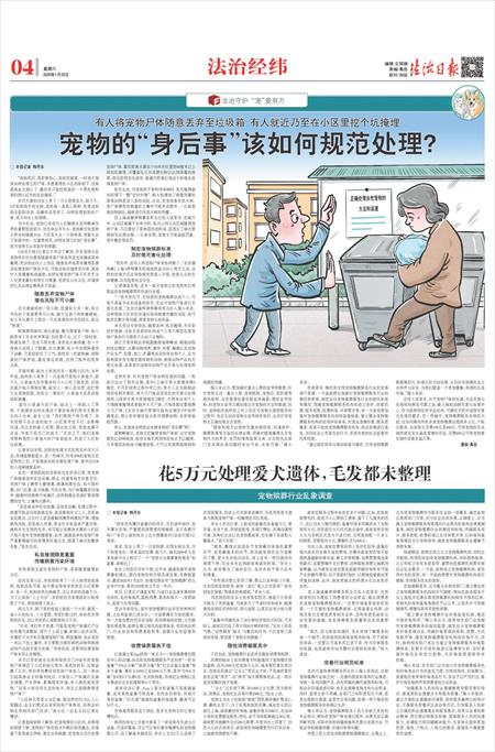 “国家和地方应加快完善动物防疫、环境保护、殡葬管理等方面的法律法规,明确对随意掩埋去世宠物行为的界定、处罚标准和监管主体,从而使执法部门在处理此类问题时有法可依、有章可循。”缑小丰说。