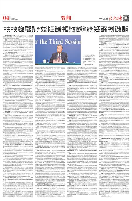 中共中央政治局委员、外交部长王毅就中国外交政策和对外关系回答中外记者提问