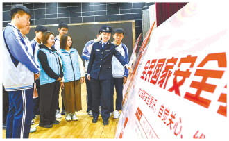 | 图为天津市滨海新区大港街道相关单位工作人员走进辖区学校开展“国家安全”普法宣传。