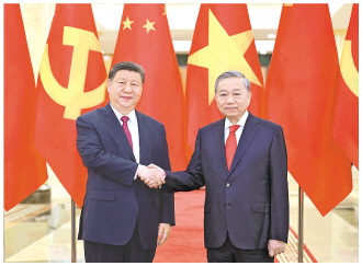 苏林热烈欢迎习近平总书记、国家主席在两国建交75周年之际对越南进行国事访问。苏林表示,习近平总书记是中国人民的杰出领袖,也是越南人民的伟大朋友。习近平总书记今年首次出访就到越南,充分体现了对越中关系的重视和对越南的支持。此访必将成为两党两国友好交往史上新的里程碑,推动两国具有战略意义的命运共同体建设取得新的进展。 苏林表示,在习近平总书记坚强领导下,中国特色社会主义事业取得历史性成就,中国式现代化全面推进,新质生产力快速发展,中国的国际地位不断提高,越方对此表示衷心祝贺,感谢中方长期以来对越南的大力支持和帮助。 苏林表示,越南和中国都是共产党领导的社会主义国家,发展对华关系是越南的客观要求、战略选择和头等优先。越方坚定奉行一个中国政策,支持中国实现统一大业,坚决反对任何“台独”分裂行径。推动越中关系不断发展符合两国人民根本利益,符合时代潮流。越方期待同中方密切两党两国高层交往,加强治国理政经验交流,增进战略安全协作,不断巩固政治互信;提升双边合作水平,打造更多经贸、科技、基础设施、环保等领域合作亮点;促进人文交流,推动地方、青年交往,加强旅游合作,增进人民相知相亲。越方支持习近平总书记提出的人类命运共同体理念和三大全球倡议,高度赞赏中共中央周边工作会议确定同周边国家建设“五大家园”愿景和坚持睦邻安邻富邻方针。越方愿同中方加强协调和配合,坚持多边主义,坚守和平共处五项原则,维护国际贸易规则,遵守双方签署的协议,共同为促进世界和平和人类进步作出更大贡献。越方愿与中方妥处海上分歧,维护海上稳定。 会谈前,苏林邀请习近平进行小范围茶叙。两党总书记就治党治国理念进行交流。习近平指出,党的建设关系党和国家前途命运,党的作风关系人心向背。中共中央决定今年在全党开展深入贯彻中央八项规定精神学习教育,以作风建设新成效为进一步全面深化改革、推进中国式现代化提供有力保障。两党总书记一致同意加强交流互鉴,共同走好社会主义道路。 会谈后,两党总书记共同见证中越双方签署的45份双边合作文本展示,涵盖互联互通、人工智能、海关检验检疫、农产品贸易、文化和体育、民生、人力资源开发、媒体等领域。 双方发表《中华人民共和国和越南社会主义共和国关于持续深化全面战略合作伙伴关系、加快构建具有战略意义的中越命运共同体的联合声明》。 当晚,越共中央总书记苏林、越南国家主席梁强共同为习近平举行欢迎宴会。越共中央政治局委员、书记处书记等领导同志全体陪同出席。 蔡奇、王毅、王小洪等参加上述活动。