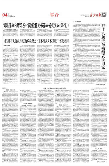 司法部有关负责人就《行政检查文书基本格式文本(试行)》答记者问