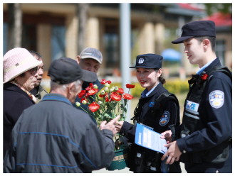 近日,山东省烟台市公安局清泉寨海岸派出所组织民警到辖区广场开展禁毒宣传活动。图为民警向群众讲解毒品原株模型。 本报通讯员 臧保东 摄