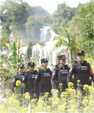 跨国瀑布畔,“热辣滚烫”的德天女警先锋队