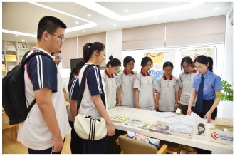 近日,江苏省扬中市人民检察院第八届“遇‘检’未来”法治夏令营正式开营,60余名青少年走进检察院,在沉浸式体验中提升法治意识。图为检察干警向参加活动的青少年介绍“知心姐姐”工作室情况。 本报记者 罗莎莎 本报通讯员 张晋毓 陈杨芸 摄