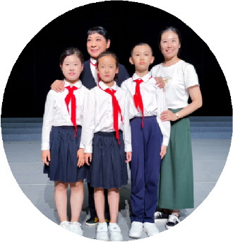 全国人大代表靳灵展(后排左一)与学生排练评剧微电影。 |