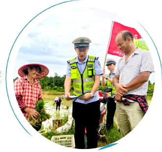 近日,江西省南丰县公安局交警大队组织民辅警走进辖区乡镇田间地头,通过唠家常、以案释法、互动答疑等方式,开展“美丽乡村行”交通安全宣传活动,引导村民自觉遵守交通法律法规,安全文明出行。图为民警在洽湾镇西坪村向村民宣传交通安全知识。 本报记者 黄辉 本报通讯员 曾知英 刘方飞 摄