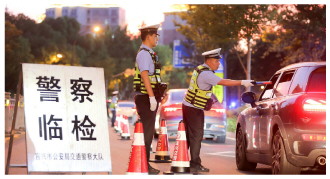 图① 7月4日,江苏省宜兴市公安局开展夏夜治安巡查宣防清查整治集中统一行动。图为民辅警在辖区路口设卡,严查酒驾醉驾等道路交通违法行为。