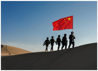 图① 7月15日,新疆阿勒泰边境管理支队恰勒什海边境派出所民警前往北沙窝区域开展巡边踏查。 本报通讯员 石晓坤 杨超 摄