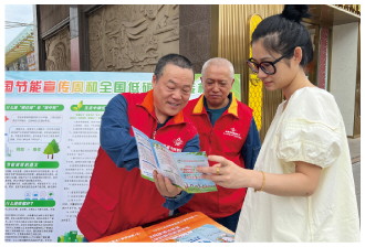 近日,国网沙湾市供电公司组织共产党员服务队,在新疆维吾尔自治区沙湾市步行街开展电力普法宣传活动。图为服务队队员向市民讲解节约用电知识。 栗兰欣 摄