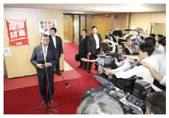 | 图为当地时间7月23日,日本东京,日本首相石破茂在自民党总部与三位前首相会晤后回答记者提问。
