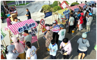 图① 安徽省舒城县公安局交管大队近日组织民辅警在城关镇主题公园附近“摆摊设点”,为市民送上一堂精彩的交通安全宣讲课。图为民辅警“摆摊”向群众发放普法材料。 本报通讯员 王可海 摄