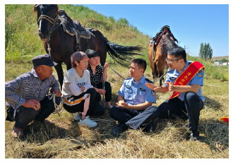 图③ 乌鲁木齐海关缉私局所属霍尔果斯海关缉私分局民警近日深入辖区城镇乡村,向群众讲解走私行为和参与走私活动的危害性。图为民警向群众讲解常见走私物品的识别方法。 本报记者 潘从武 本报通讯员 阿依迪达 摄