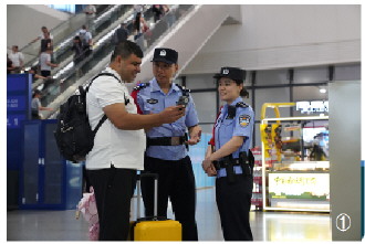 图① “明伟先锋岗”民警接受旅客咨询。 图② 民警在“和谐号调解室”成功化解一起旅客纠纷。 李雨坤 摄