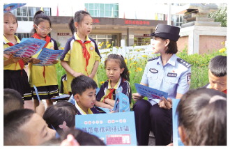 □ 本报记者 赵志锋 □ 本报通讯员 左栋 “同学们别跑,注意看红绿灯!”每天清晨7点半,在甘肃省庆阳市西峰区团结小学门前,都会有一位身着藏蓝警服、面带笑容的女民警穿梭于熙熙攘攘的人群中,她时而指挥交通,时而细心地护送孩子们安全过马路。 她就是庆阳市公安局西峰分局南街派出所民警张亚琴,作为团结小学的法治副校长,3年来,她以法治教育播撒着安全的种子,秉承“孩子的事无小事”原则,构筑起一道温暖且坚固的安全防线。孩子们亲切地称她为“警察妈妈”。 法治教育 “同学们,假如有同学故意撞你、抢你的文具,这就有可能是校园欺凌的表现。遇到这种情况,一定不要害怕,要及时告诉老师和警察叔叔。”法治教育课上,张亚琴的讲解吸引着孩子们的注意,大家踊跃发言,分享自己的亲身经历和看法。 校园法治教育,对张亚琴而言,是工作的重心。她深知,孩子们若能自幼树立法治观念,未来在人生的旅途中便能少些曲折。为了让法治课堂不再枯燥乏味,张亚琴巧妙地结合真实案例,将校园欺凌的定义、危害以及应对策略,用浅显易懂的语言娓娓道来。 除了定期开设法治课堂,张亚琴还创新性地利用“红领巾广播站”,开设了“法治10分钟”专栏。在这里,她精心编排的法治小故事和安全小贴士,通过广播传遍校园的每个角落。 “警察阿姨,我最近总是情绪低落,不愿交流。”面对小宇(化名)的诉说,张亚琴耐心倾听后温柔地说:“小宇,我们一起来找找原因,好不好?”通过一次次交流,小宇逐渐认识到自己的问题,脸上也重新绽放出灿烂的笑容。 “在妈妈手机上玩游戏时,我不小心点击了陌生的链接,结果被骗走了26元钱。”张亚琴常在课间闲暇之时,和学生交流大家身边真实发生的电信网络诈骗案例,并适时为孩子们揭示其中的诈骗风险。孩子们纷纷表示,今后一定会提高警惕,严防电信诈骗事件的发生。 这样的法治教育互动已成常态。自担任法治副校长以来,张亚琴已经累计举办了22场关于防欺凌、防诈骗等主题的讲座,为16名师生提供了心理辅导,法治教育覆盖了全校2200余名师生。 安全检查 “刘师傅,还记得这个防暴叉的使用要领吗?” “这个拒马太轻了,发挥不了作用,需要增加些重量。” 张亚琴每周都会到学校检查出入登记情况,查看安保装备是否配备齐全,同时不厌其烦地提醒着门卫和保安。她还积极参与学校的应急演练,对从火灾逃生到反恐防暴的每一个环节都进行严格把关,力求确保在紧急时刻,师生们能够做到迅速有序地疏散。 餐饮安全、燃气安全、用电安全、消防安全等都是张亚琴关注的重点。在学校食堂,张亚琴仔细检查食材的采购记录、食品加工过程以及餐具消毒情况。“这些蔬菜一定要清洗干净,生熟食品要分开存放,可不能马虎。”她对食堂工作人员说。 2024年秋季开学前,她发现学校围墙有一处监控盲区,当即协调加装了两个摄像头。门卫老李感慨:“张警官查安全像‘破案’,啥问题都逃不过她的眼睛。” 3年来,张亚琴推动学校整改各类安全隐患67处,组织防暴恐、消防演练8次。 隐患排查 校外安全隐患的排查工作同样是张亚琴倾注心力的一项重要任务。为了给孩子们创造一个良好的校外环境,张亚琴主动与城管等相关部门紧密协作,对校门口周边的流动摊贩进行耐心劝说,逐一引导疏散,不仅有效消除了食品安全隐患,还确保了孩子们上下学的道路畅通。 一次校外巡查时,张亚琴发现一家理发店播放音乐的音量震耳欲聋,嘈杂的声音严重干扰了正常的教学秩序。她立刻走进店里对店主说道:“老板,咱这店离学校近,声音太大的话,孩子们上课可就没法好好学啦,麻烦把音量调小点儿吧。”店主一听,赶忙点头致歉,立即调低了音量。 对于校外托管中心,张亚琴也丝毫不敢懈怠。她定期上门走访,仔细检查消防通道是否畅通,认真核实工作人员的资质。在她眼里,这些校外托管中心就是孩子们的“第二校园”,必须确保安全万无一失。 每天上下学的重要时刻,无论刮风下雨还是烈日炎炎,张亚琴总会准时出现在护学岗上。她和学校老师、保安紧密配合,引导车辆依次通行,小心翼翼地护送孩子们过马路。“小朋友们,排好队,别跑呀!”她的声音充满关爱。 “守住孩子们身边的法治底线,就是守住社会的平安未来。”这是张亚琴常常挂在嘴边的一句话。她用自己的坚守与付出,诠释着一名人民警察的责任与担当。在孩子们心里,她就是那个安全感满满的“警察妈妈”。 图① 张亚琴在护学岗引导学生过马路。 图② 张亚琴在学校开展反诈宣传。 庆阳市公安局西峰分局供图