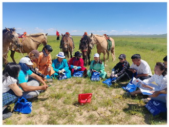 图③ 近日,内蒙古自治区巴彦淖尔市乌拉特中旗温更镇综治中心、司法所联合乌拉特鸿雁女子骑行队,走进呼日木图嘎查草原开展“马背送法”主题普法宣传活动。图为普法工作者向牧民讲解民法典中有关草场承包经营的相关内容。 本报记者 常煜 本报通讯员 高超 摄