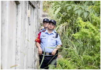 郑渝高铁万州至巫山段,汛期易发边坡塌方、线路积水等险情。近日,成都铁路公安局重庆公安处巫山站派出所民警顶着烈日开展线路隐患巡查、铁路安全宣传等工作,切实保障列车运行安全。图为民警对辖区铁路栅栏封闭情况进行检查。