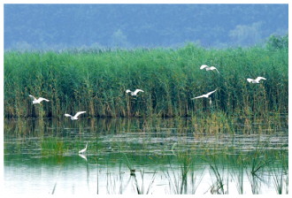 2021年以来,山东济南加大白云湖湿地公园生态保护修复力度。如今,园内动植物资源丰富,有千亩红莲、芦苇荡,现有高等植物223种,记录鸟类145种、鱼类22种,东方白鹳、青头潜鸭等珍稀鸟类在此栖息。图为整治后的白云湖湿地成为鸟类乐园。