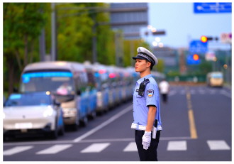 图为成都交警在世运会开幕式会场附近路口执勤。 本报记者 马利民 本报通讯员 蒋波 摄