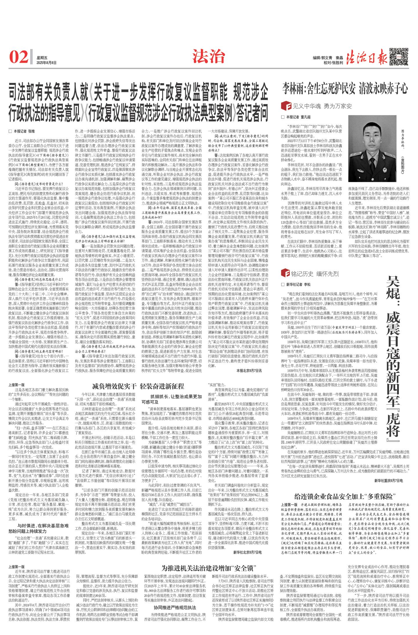 行政执法的指导意见》《行政复议监督规范涉企行政执法典型案例》答记者问