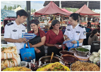 | 近日,新疆维吾尔自治区伊犁哈萨克自治州伊宁市司法局潘津司法所工作人员在巴扎(集市)开展反诈宣传。图为司法所工作人员向群众发放宣传资料。