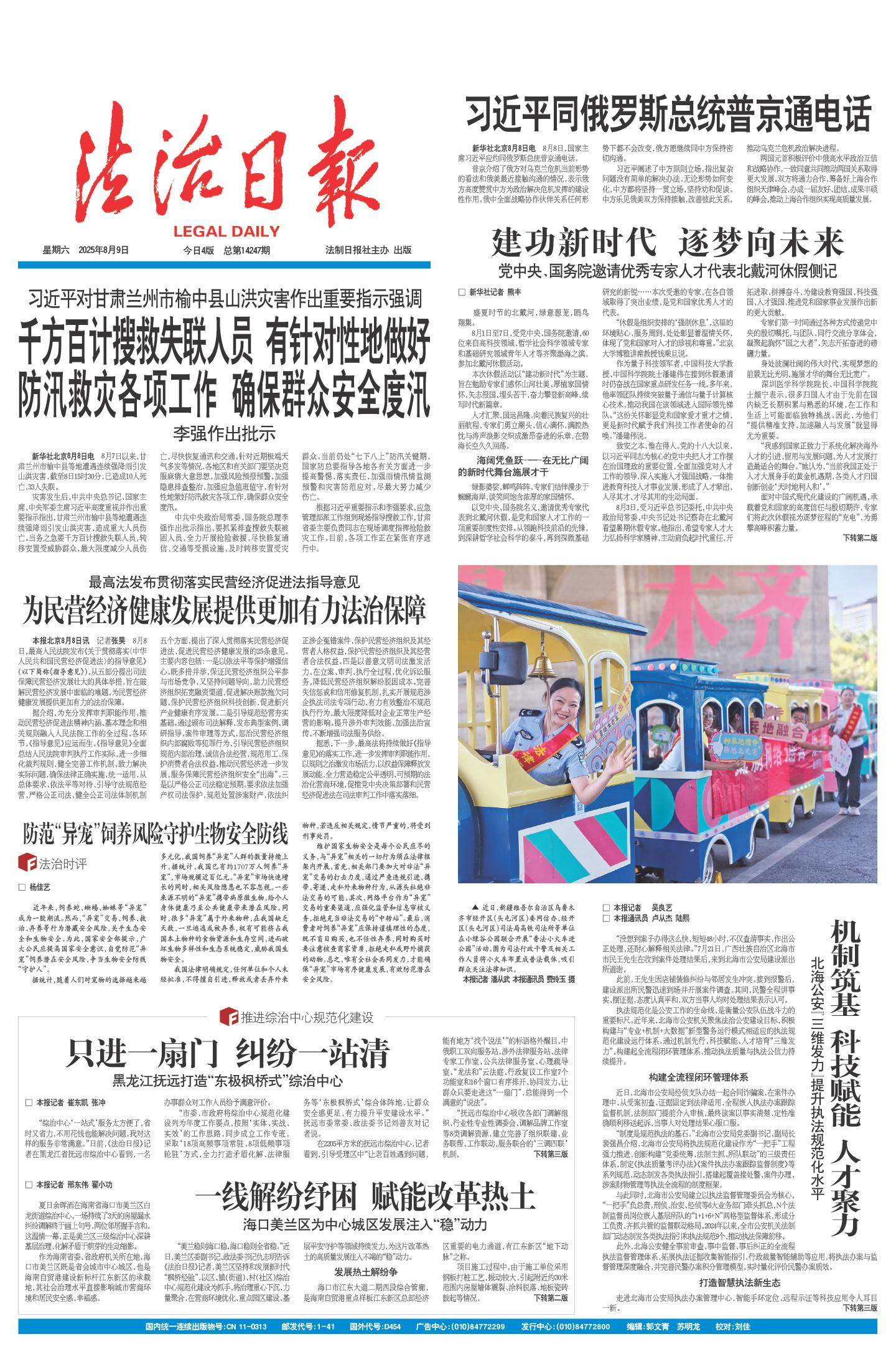 为民营经济健康发展提供更加有力法治保障 (2025年08月09日) |