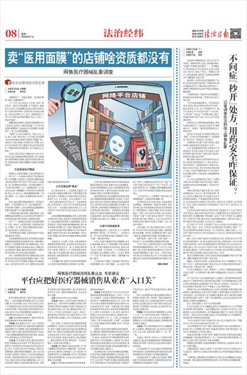 □ 本报见习记者 刘紫薇 □ 本报记者 韩丹东 “面膜竟成了‘二类医疗器械’,‘医用修护敷贴’普通人也能随便用?” 几个月前,河北的陈女士受家人委托,帮忙购买一款医用保湿面膜。点开链接后,她感觉不太对劲:这款面膜的商品宣传图中虽然注明了品牌名称和缩写,但图中展示的商品包装盒上却没有品牌中文名,盒子上能看清的中文字只有中间的“医用修护敷贴”和左上方的“二类医疗器械”。 她翻到商品详情页,想看看这款面膜成分和厂家信息,却发现,详情页里堆叠了五六种不同品牌的面膜图片,但就是没有这款面膜,更别提成分、厂家,这让她更觉蹊跷。 “看着不太正规,我就没买。”陈女士说。之后,她又去查了相关规定,这才知道,医用面膜(实际为医用敷料)根据产品特性可能属于第二类或第三类医疗器械,如果要在网上销售,应当在产品页面展示医疗器械注册证或者备案凭证。“我看的那家店啥都没有,也不知道怎么过的审。” 《法治日报》记者近日调查发现,当前,多个平台存在医疗器械违规售卖的现象,其中包括商家无资质网售医疗器械、商品页未按规定展示资质、违规转卖医疗器械、模糊医疗器械名称规避审核等。 无资质卖医疗器械 按照陈女士提供的链接,记者在某电商平台上一家名为“××生物美妆经营部”的店铺里找到了这款面膜。在商品页,记者看到,面膜的商品名称和宣传图中均有“医用”字样,和陈女士的描述一样,宣传图里的包装盒上“医用修护敷贴”几个黑体字格外醒目,让人一眼就能看到,与之形成对比的是下面模糊的小字和类似红印章的图案。除此之外,盒子左上角的确清晰地印着“二类医疗器械”,右上角则只有面膜品牌名的英文缩写。 然而,商品详情页规格参数表中,“是否医疗器械”一栏是明确的“否”字,“医疗器械类别”一栏则写着“非器械”。记者在国家药品监督管理局的数字查询库中并未查到该款面膜。 记者就此情况询问客服,客服回复称,这款面膜就是医用面膜,但当记者询问为何详情页中没有按规定展示相关资质时,客服再未回复。 此外,“××生物美妆经营部”的店铺详情显示,这是一家由个人经营的网店,而按照相关规定,从事第二类、第三类医疗器械经营的申请人应当是依法进行工商登记的企业。 无资质售卖医疗器械、未按规定展示产品资质的情况并不鲜见。 记者梳理国家药监局在官网通报的52起医疗器械网络销售违法违规案件信息,发现问题主要集中于未按照要求展示医疗器械注册证、未经许可网售医疗器械(含未按规定告知)、销售未依法注册的医疗器械、擅自变更经营场所、销售说明书和标签不符合规定的医疗器械等。 其中,未按照要求展示医疗器械注册证及备案凭证相关的违法违规案件数量占比最大,为20件;其次是未经许可网售医疗器械(含未按规定告知),相关案件为18件;此外,销售未依法注册的医疗器械类案件则有9件。 公示页面证照“隐身” 在几家电商平台上,记者搜索并查看了多个品类医疗器械的销售页面,发现网售医疗器械的商家大多数都会在店铺详情页对资质证照进行公示。公示页面上,除去证照照片,平台一般还会要求商家自行申报,但一些店铺却直接让证照“隐身”,只留下自行申报的营业执照信息。此外,一些店铺在商家资质的公示上还出现自行申报信息和证照信息前后矛盾的现象。 以某品牌隐形眼镜旗舰店为例,记者在资质证照展示部分看到,卖家自行申报的资质信息显示,这家店铺的经营范围不含隐形眼镜,也未注明包括第三类医疗器械(隐形眼镜即属于第三类医疗器械)的销售,但下方医疗器械经营许可证上却注明包含2002年医疗器械分类目录中6822号编码(此编码下的分类中包含隐形眼镜),和2017年医疗器械分类目录中16号编码(同样包含隐形眼镜)。 也就是说,从证照上来看,这家店铺具有销售隐形眼镜的资质,但卖家的申报信息却与证照资质中的信息并不一致。记者就此情况询问平台客服,客服表示,关于商家资质信息的问题,他们无法直接处理,建议记者直接联系商家客服。商家客服则再三向记者保证店铺具有经营资质。 记者调查发现,商家自行申报的经营范围和公示证照中的经营范围存在差异的不在少数。 记者以新注册商家的身份和对接卖家的客服就此现象进行沟通,客服对此给出的解释是,系统中的资质数据存在延迟,某些特殊资质可能尚未被完全收录,只要发布商品时没报错,就说明商家已满足开店所需的资质要求。 商品资质展示缺失的问题则更加普遍。按照《医疗器械网络销售监督管理办法》规定,产品页面应当展示该产品的医疗器械注册证或者备案凭证,相关展示信息应当画面清晰,容易辨识。但记者发现,多款网售医疗器械商品的产品页面并未按规定展示相关资质,一些商家甚至会用器械批准文号代替医疗器械注册证或备案凭证展示在商品详情页,还有部分商品详情页中展示的医疗器械注册证图片过于模糊,让人无法看清内容。 以替代词逃避监管 随着调查的深入,记者发现,在个人卖家聚集的购物小程序和二手交易平台上,一些卖家会将一些不能无资质售卖的医疗器械换个叫法,“包装”一番后进行售卖。 以第三类医疗器械软性亲水接触镜(本文主要指美瞳,因此以下均称美瞳)为例,按照规定,第三类医疗器械具有较高风险,售卖这类产品应当具备一系列资