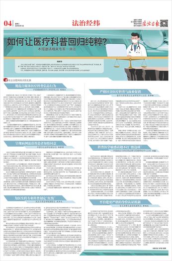 编者按 当白大褂成为流量“战袍”,当科普话术暗藏带货密码,谁来划定那条关乎生命健康的红线?本报近日刊发“依法治理网络涉医乱象”系列报道,揭露了网络“神医”剧本、假医生认证黑灰产、科普变味“暗广”链条以及“网红医生”标准化生产线等问题。 乱象纷扰,其本质是医疗专业主义在流量裹挟下的失守——科普的边界日益模糊,职业的伦理渐被侵蚀。 今天,本报邀请相关专家从伦理底线、法律权责、平台治理三重维度,共同求解:如何让医疗科普回归纯粹,让专业重获敬畏?