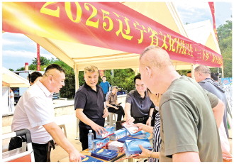 8月13日,辽宁省文化科技卫生“三下乡”集中示范活动在阜新蒙古族自治县大板镇大板村举行。图为阜新市司法局、阜新蒙古族自治县司法局工作人员在活动现场开展普法宣传。 本报通讯员 聂新鑫 摄
