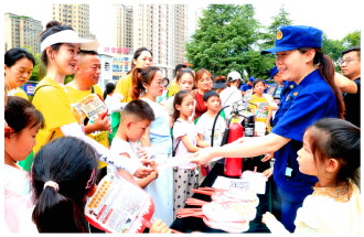 近日,“好运山东”定向运动联赛(枣庄站)在山东省枣庄市滕州市开赛。活动期间,选手们走进滕州市消防救援大队北辛消防救援站消防打卡点,沉浸式参与消防知识学习、解锁应急技能、化身“水枪射手”、打卡“火焰蓝”等趣味活动。图为消防救援人员现场与选手们互动。 本报通讯员 季龙 摄