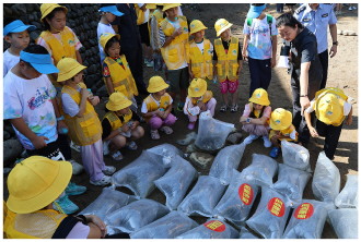 8月13日,福建省光泽县人民法院干警带领暑期生态夏令营的20余名中小学生来到武夷山国家公园,在青山绿水间共上生态司法保护“体验课”。图为法院干警为孩子们讲解水生态环境保护法律知识。 本报记者 王莹 本报通讯员 罗娟 官诗扬 摄