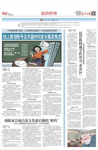 天津一所新建学校的墙外,玉米地环绕的小村庄宁静质朴。然而,放眼望去,十几块托管机构招牌格外醒目。步入村中,这个几十户人家的村庄开了十几家托管机构,成为许多孩子在暑期的去处。 《法治日报》记者近日实地调查发现,这些看似提供基础托管服务的场所,实则是隐形学科培训的“重灾区”。非寒暑假期间,它们以辅导作业为主;一到暑假,“主业”就悄然转变为学科培训。 多位托管老师向记者透露,家长送孩子来的核心诉求,就是希望机构能教授学科知识,甚至提前学完下学期课本内容。记者在现场并未看到任何学科补习的宣传海报,但在机构负责人的朋友圈里,“补弱培优”“教完下学期一册书”等宣传语扑面而来,与《校外培训行政处罚暂行办法》中“托管不得开展学科培训”的规定背道而驰。 明面托管暗地补习 记者走访北京、天津等地发现,这种打着“托管”的旗号,暗地进行学科培训的“明托管、暗补习”模式,已在部分地区出现。这些机构的运作方式隐蔽:它们大多选择藏身居民楼或民房,以规避监管检查;将学科内容伪装成“作业辅导”“思维训练”或“阅读拓展”等合规名目。 在北京市朝阳区一家名为“××书院”的机构,表面开设书法、绘画课程,实则提供“作业帮托管”和“五科课程任选”,其数学思维、英语阅读等内容与校内学科知识高度重合。该机构工作人员告诉记者,暑期托管的核心优势就是“超前预习下学期内容”,这是吸引家长的关键。 在采访中,记者看到多家托管机构都在极力宣传学科培训,主要形式是通过社交平台或家长口口相传。天津城郊某托管机构强调其拥有“10年以上教学经验讲师”以及“针对性教学”等核心优势。从其收费标准来看,30天1500元的暑期班明确承诺“保证教完下学期一册书”,而晚间托管每月600元的服务项目中,也包含了“作业辅导和针对性教学”等内容。 为吸引生源,一些机构采用“39元定金抵100元”“2人组团赠学习礼包”等营销手段。有业内人士指出,这种预收费模式虽然涉嫌违反相关规定,却能快速回笼资金并绑定客户。 “其实我们也知道托管机构不应该搞学科培训。”正在北京某托管机构办理手续的家长王女士坦言,“但别的孩子都在补,我们不补心里就没底,怕孩子开学后跟不上。” “小课班”钻入民宅 更为隐蔽的“一对一”“一对多”小课班,也在一些社区悄然蔓延,成为监管新难点。 北京某托管机构老板向记者透露,有些公立学校教师利用假期,在居民楼内开设2至3人的“小灶班”,每课时收费高达300元至500元。“这些全靠家长私下介绍,没有宣传,遇检查就说朋友帮忙辅导孩子,很难认定违规。”该老板坦言,他自己的托管机构实际也是一位公立学校行政岗教师在打理。 记者注意到,一些受访家长的社交群中,类似“数学思维提升小组”的招募信息十分活跃,常以聘请“清北在读生”为噱头,课时费逼近千元。为躲避监管,授课地点会在参与家庭间轮换。“学校进度满足不了孩子需求,只能这样‘加餐’,轮流提供场地也不易被发现。”一位参与其中的家长这样解释。 记者调查发现,以“住家保姆”“成长规划咨询”等名义捆绑学科辅导的服务也悄然出现,收费高昂且形式隐蔽。 北京的吴女士就为自己上小学的女儿聘请了一位“住家保姆”,每天4个小时600元,周一到周五上课,负责教授语数外科目,主要是预习下学期的课程。不过这属于中间价位,如果是在职教师“一对一”会更高,一天要2000元。 焦虑催生补习暗流 暑期违规培训为何屡禁不止? 北京外国语大学法学院教授姚金菊分析,其核心根源在于教育评价体系的单一性与优质教育资源的不均衡。在现行中、高考选拔机制下,分数是主要标尺,这直接导致一些家长陷入“别人补我也得补”的剧场效应。 “一些家庭将教育投入视为‘防御性支出’,宁可节衣缩食也要保障孩子补习,形成‘校内减负、校外增负’的循环。当优质资源集中在少数学校,升学又主要看分数时,一些家长为了孩子的未来,无奈选择校外培训这条路。”姚金菊说。 盈科北京刑民行交叉法律事务部主任韩英伟指出监管执法层面的三大难点。首先,法规衔接不足,对“隐形变异培训”的认定标准过于模糊。其次,执法协同有待进一步提升。教育部门作为主责单位却无强制执法权,发现违规线索后需移送其他有执法权部门,过程中极易导致证据灭失。最后,惩戒力度薄弱。对小课班个体违规者,常以“家庭劳务”“朋友互助”等借口成功辩解规避处罚,即便被查,处罚也较轻,难以形成震慑。 姚金菊进一步补充了监管体系的深层次短板:针对民办校外培训的专项立法缺失,高准入门槛反而使伪装成“教育咨询”“文化公司”的机构长期游离于监管之外;教育部门负责办学许可,市场监管部门主管登记,跨系统信息壁垒导致审批与监管一定程度的脱节;现行监管侧重事前审批,对运营中的动态风险管控存在一定不足,面对“一对一私教”等变异形态,因执法资源有限、需求巨大及教学私密性强,治理难度较大。 针对乱象,姚金菊建议,加快校外培训管理条例出台步伐,明确学科类机构强制非营利属性、非学科类实行收费上限管制,同步修订处罚依据,将“超前教学”“无证办学”纳入明确禁令,并通过类型化条款清晰界定各类隐形变异培训情形,提升执法可操作性。同时,建立