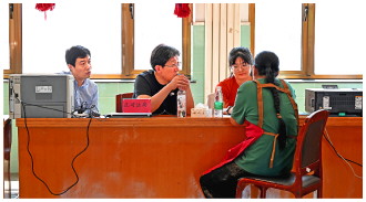 图① 8月6日,北京市怀柔区司法局工作人员与律师一起走进琉璃庙镇,为受灾群众提供法律咨询服务。