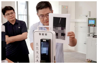 近日,北京市消费者协会开展比较试验评测场景互动活动,邀请消费者和媒体代表走进实验室,“沉浸式”体验家电、日化、纺织品的测试流程。图为工作人员正在对智能门锁的安全性开展测试。 本报记者 张雪泓 摄