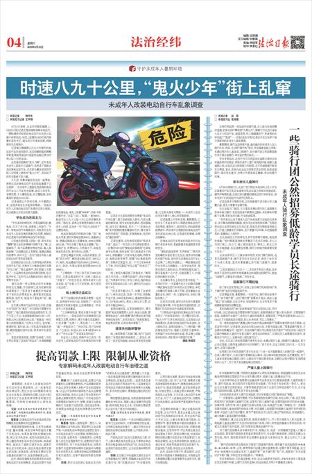 暑假期间,未成年人改装电动自行车引发的安全事故频发,这一乱象背后的法律边界、责任认定与治理路径成为社会关注焦点。围绕相关问题,《法治日报》记者采访了北京星权律师事务所副主任甄景善、可持续交通创新中心研究员郑翔。
