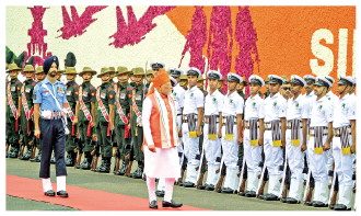 当地时间2025年8月15日,印度新德里,印度总理莫迪在红堡检阅仪仗队,庆祝印度第79个独立日。莫迪在讲话中强调建设“发达印度”,并宣布了包括下一代商品和服务税改革及面向青年的“总理发达印度就业计划”在内的重大举措。