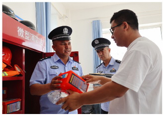 图③ 为加强校园安全防范工作,及时有效消除安全隐患,新疆维吾尔自治区阿瓦提县公安局近日组织警力走进辖区校园,开展开学前校园安全专项检查。图为民警对校园安防设施设备进行检查。