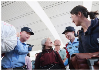 图① 8月26日,铁路迎来开学季与暑运叠加客流高峰。为确保旅客出行安全,武汉铁路公安局襄阳公安处襄阳站派出所开展秩序维护等工作,筑牢站区安全防线。图为民警在候车室为旅客指引乘车检票。 本报通讯员 郑晓明 摄 图② 暑运工作进入最后阶段,北京铁路公安局天津公安处全面强化治安防控、违法犯罪打击与服务保障,全力守护旅客平安顺畅出行。图为民警近日在执勤期间为旅客指路。 本报记者 范瑞恒 本报通讯员 魏姮 摄 图③ 暑运以来,青藏铁路公安局西宁公安处聚焦线路治安巡防等环节,保障旅客出行平安顺畅。图为8月24日,西宁铁路公安处西宁站派出所民警协助旅客乘车。 本报通讯员 贺瑞明 马桢 摄 图④ 暑运启动以来,西安铁路公安局西安公安处宝鸡南站派出所民警围绕治安管控等工作精准发力,为旅客营造安全有序出行环境。图为近日,民警在候车室里核实旅客乘车证件。 本报通讯员 张鑫 摄