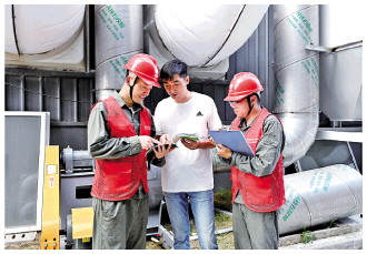 ▲ 近日,国网温州供电公司员工走进浙江省瑞安市兴望212亩小微园区,开展保护电力设施宣传活动。图为员工向屋顶光伏项目负责人讲解电力设施保护知识和法律规定。