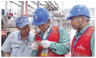 近日,国网奎屯供电公司组织共产党员服务队,在中粮屯河乌苏番茄制品有限公司开展安全用电宣传活动。图为服务队队员向企业员工讲解安全用电知识。 刘兆新 摄