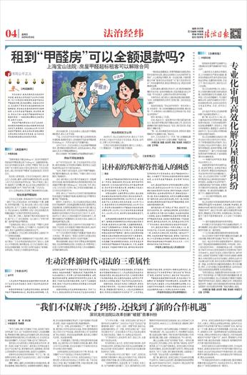 租到房东私接燃气且被燃气公司检测出存在燃气泄漏的房子该怎么办? 上海的张先生遇到这种情况后,认为房屋存在严重安全隐患,要求房东根据合同无条件退房并退还租金及押金,但遭到房东拒绝。无奈之下,张先生起诉至上海市宝山区人民法院。 宝山区法院审理认为,出租人有义务提供满足租赁目的的适租房屋,当租赁房屋存在安全隐患、危及承租人安全或者健康时,可以随时解除合同。法院判决解除双方签订的房屋租赁合同,由房东退还张先生租金及押金。目前,该判决已生效。 这只是近年来宝山区法院审理的数千起房屋租赁案件之一。 据了解,宝山区为人口流入区,又兼具城市和农村两种环境,房屋租赁市场活跃,引发的房屋租赁纠纷呈现出数量攀升、类型多元、矛盾交织的新特点。数据显示,2023年至2025年7月,宝山区法院共受理房屋租赁合同案件3849件。 宝山区法院副院长洪波近日接受《法治日报》记者采访时介绍说,为了审理房屋租赁合同案件,宝山区法院以专业化审判为基石,优化案件审理流程,延伸审判职能,积累并探索形成了一套行之有效的房屋租赁类案件审理机制,打造房屋租赁纠纷化解新格局。 ——构建专业审判机制,配备专业化审判人才。 房屋租赁类案件具有高度专业化、复杂性等特点,法律适用难点多、类型多样,需要法官具备相应的专业知识和识别专业问题的能力。为此,宝山区法院在传统“大民事”审判格局内设立相对固定的房地产审判团队,选优配齐专业审判骨干,长期深耕房地产审判领域,积累较为丰富的审判实践经验,确保裁判尺度的统一性、稳定性和前瞻性,取得了令人满意的审判效果。 ——优化案件审理流程,高效化解矛盾纠纷。 宝山区法院针对普通房屋租赁案件法律关系相对清晰但事实查明(如房屋现状、欠租金额、押金退还、装修损失评估等)耗时较长的特点,在立案阶段大力推行“要素式审判”,通过引导当事人填写《房屋租赁纠纷要素表》,精准固定无争议事实,快速锁定核心争议焦点,提升了案件开庭审理的效率,大大加快了纠纷解决进度。 ——提升房屋租赁类案件的审判质效。 针对辖区内多发的虚拟产权式商铺租赁案件,开展专题调研,制定《虚拟产权式商铺案件审理指南》,明晰审判思路、统一裁判规则。 ——以司法建议督促房屋租赁市场规范治理。 宝山区法院针对案件审理中暴露出的普遍性、源头性问题,积极发挥司法建议“啄木鸟”功能。 如在一起共有非居住房屋租赁案件中,某国有企业位于黄金地段的商铺被层层转租,中间出现二房东、三房东甚至四房东,一间商铺的租金从第一手租赁的每月每平方米100元层层加码到末手租赁的每月每平方米300多元,进而引发房东之间的矛盾纠纷。案件审结后,法院就“层层转租”问题引发的安全隐患与管理难点,向相关国有企业发出司法建议。该国有企业针对司法建议进行反馈,将对在租赁合同期内的房屋进行逐一排查,如发现仍存在擅自转租现象的,责令及时整改;同时,公司内部建立完善的管理机制,运用信息化手段全流程规范租赁管理,防范租赁风险。 “安居方能乐业。房屋租赁纠纷的有效化解,关乎千家万户的切身利益,关乎辖区租赁市场的健康发展,更关乎社会的和谐稳定。宝山区法院通过不断提升房屋租赁案件审判的专业化、规范化、智能化水平,为营造更加规范有序、充满活力的区域房屋租赁市场环境,提供更加坚强有力的司法服务和保障。”洪波充满信心地说。 (本报记者 陈磊 余东明 周斌 张海燕 本报见习记者 王宇翔)
