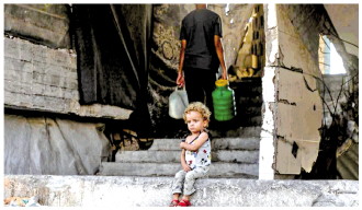 图为8月27日在加沙城西南一处避难所拍摄的巴勒斯坦儿童。 新华社发