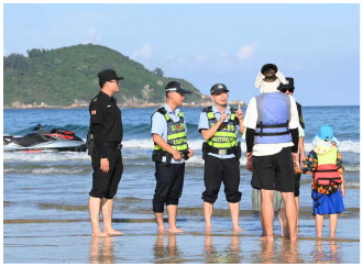 今年以来,海南省三亚市公安局旅游警察支队聚焦聚力主动警务、预防警务,统筹推进旅游治安打、防、管、治,持续净化旅游市场治安环境。图为支队民警近日在亚龙湾海滩执勤。 本报记者 邢东伟 本报通讯员 田和新 摄