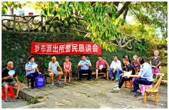 连日来,江西省奉新县公安局组织民警深入辖区乡镇,向群众普及防诈骗、防溺水、防火灾及交通安全等知识,不断筑牢乡村安全防线。图为罗市派出所民警近日在香樟树下举行警民恳谈会,现场听民声、聊民事、解民忧。 本报记者 黄辉 本报通讯员 施佳良 摄