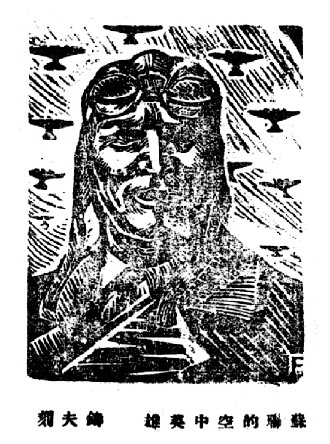 图⑦:1939年8月18日,《新华日报》刊登铸夫创作的《苏联的空中英雄》。