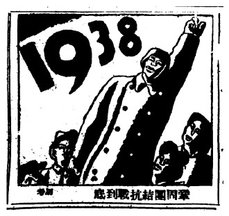 图⑥:1938年1月11日,《新华日报》创刊号刊登胡考创作的《巩固团结抗战到底》。