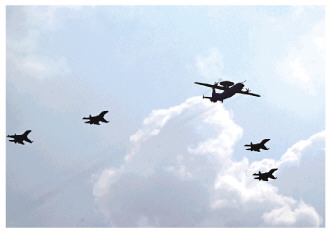 预警指挥机梯队接受检阅。 本报记者 杨晋峰 摄