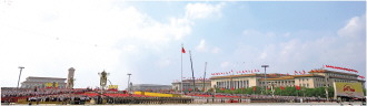 9时15分,标兵就位,阅兵开始。