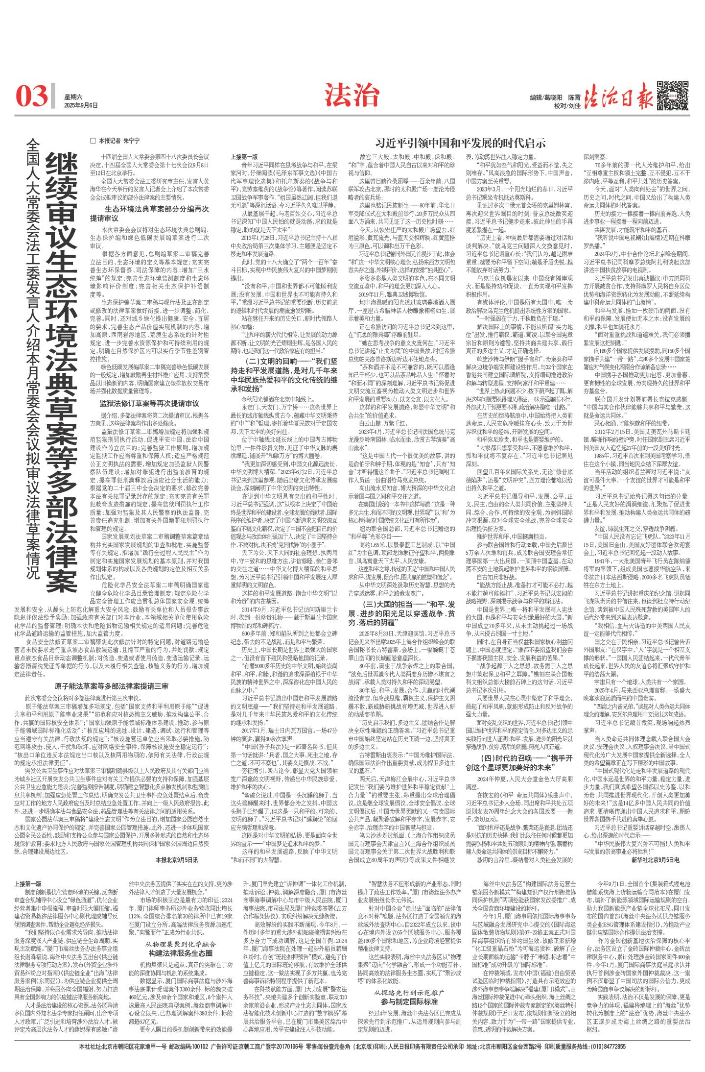 继续审议生态环境法典草案等多部法律案